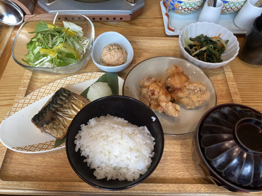 熟成鶏の唐揚げめんたい風味&焼き塩さば定食